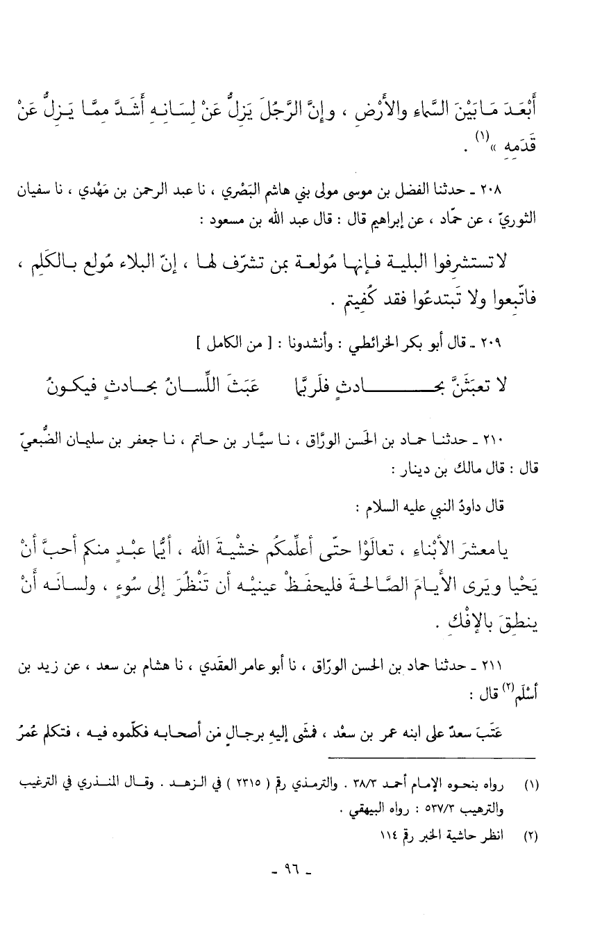 209 - قَالَ أَبُو بكر الخرائطي وأنشدونا من الْكَامِل