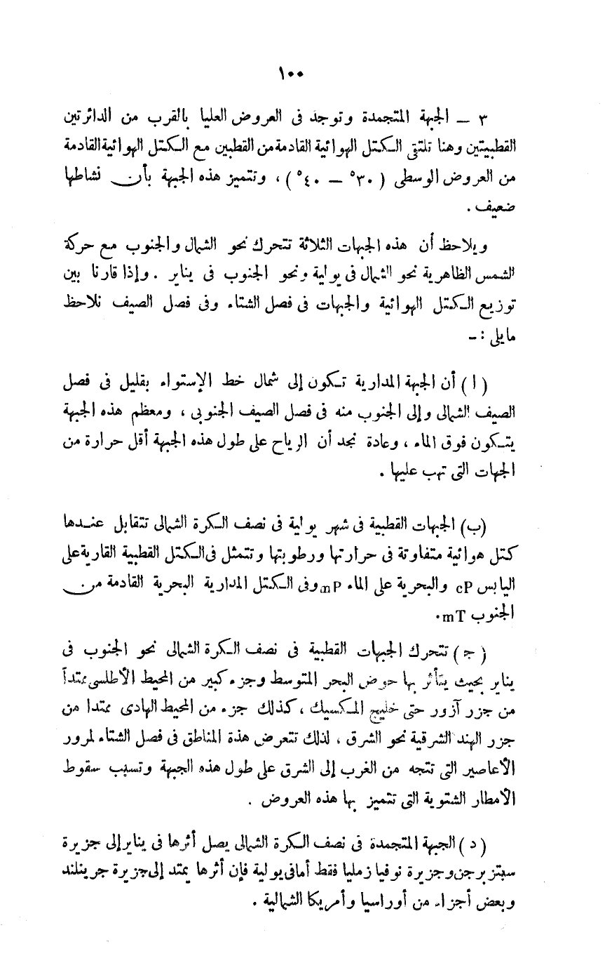 د- الجبهة المتجمدة في نصف الكرة الشمالي يصل أثرها في يناير إلى جزيرة سبتزبرجن وجزيرة نوفيا زمليا فقط، أما في يولية فإن أثرها يمتد إلى جزيرة جرينلند وبعض أجزاء من أوراسيا وأمريكا الشمالية.