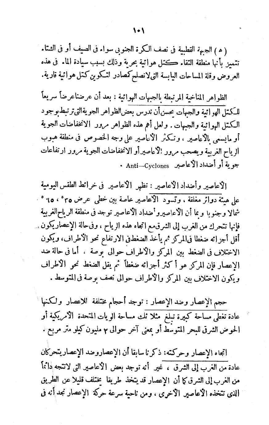 بعد أن عرضنا عرضًا سريعًا للكتل الهوائية والجبهات يحسن أن ندرس بعض الظواهر الجوية التي ترتبط بوجود الكتل الهوائية والجبهات. ولعل أهم هذه الظواهر مرور الانخفاضات الجوية أو ما يسمى بالأعاصير, وتكثر الأعاصير على وجه الخصوص في منطقة هبوب الرياح الغربية ويصحب مرور الأعاصير أو الانخفاضات الجوية مرور ارتفاعات جوية أو أضداد الأعاصير Anti-Cyclones.
