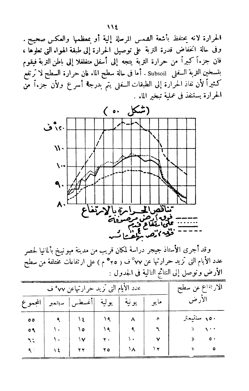 وقد أجرى الأستاذ جيجر دراسة لمكان قريب من مدينة ميونيخ بألمانيا لحصر عدد الأيام التي تزيد حرارتها عن 77 ْف "25 ْم" على ارتفاعات مختلفة من سطح الأرض وتوصل إلى النتائج التالية في الجدول: