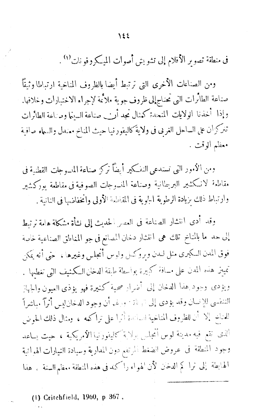 ومن الأمور التي تستدعي التفكير أيضًا تركز صناعة المنسوجات القطنية في مقاطعة لانكشير البريطانية وصناعة المنسوجات الصوفية في مقاطعة يوركشير وارتباط ذلك بزيادة الرطوبة الجوية في المقاطعة الأولى وانخفاضها في الثانية.