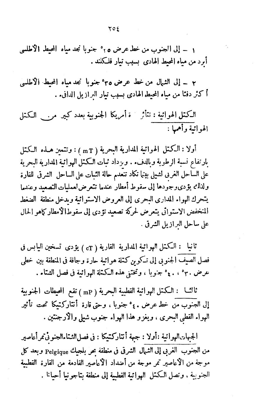 ثالثًا: الكتل الهوائية القطبية البحرية "mP" تقع المحيطات الجنوبية إلى الجنوب من خط عرض 40 ْجنوبًا، وحتى قارة أنتاركتيكا تحت تأثير الهواء القطبي البحري، ويغزو هذا الهواء جنوب شيلي والأرجنتين.