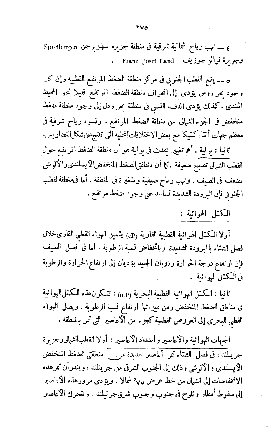 4- تهب رياح شمالية شرقية في منطقة جزيرة سبتزبرجن Spiztbergen وجزيرة فرانز جوزيف Franz Josef Land.
