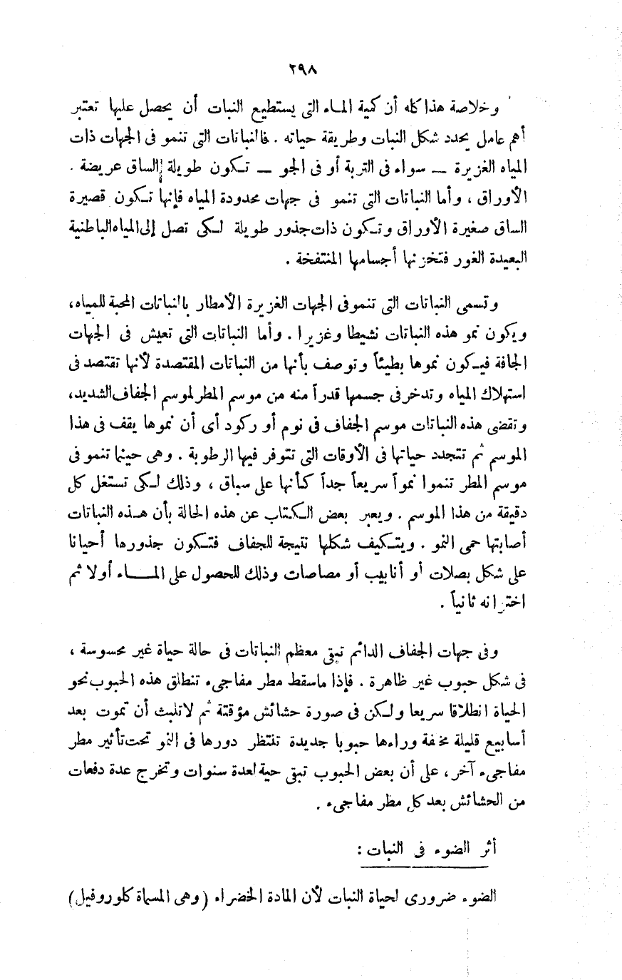 الضوء ضروري لحياة النبات؛ لأن المادة الخضراء "وهي المسماة كلوروفيل"