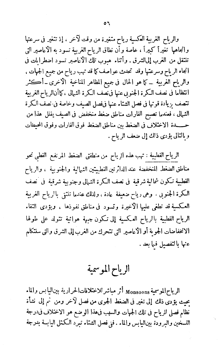 الرياح الموسمية Monsoons أثر مباشر للاختلافات الحرارية بين اليابس والماء بحيث يؤدي ذلك إلى تغير في الضغط الجوي من فصل لآخر، ومن ثم إلى نشأة نظام فصلي للرياح في تلك الجهات، والسبب في هذا الوضع هو الاختلاف في درجة التسخين والبرودة بين اليابس والماء، ففي فصل الشتاء تبرد الكتل اليابسة بدرجة