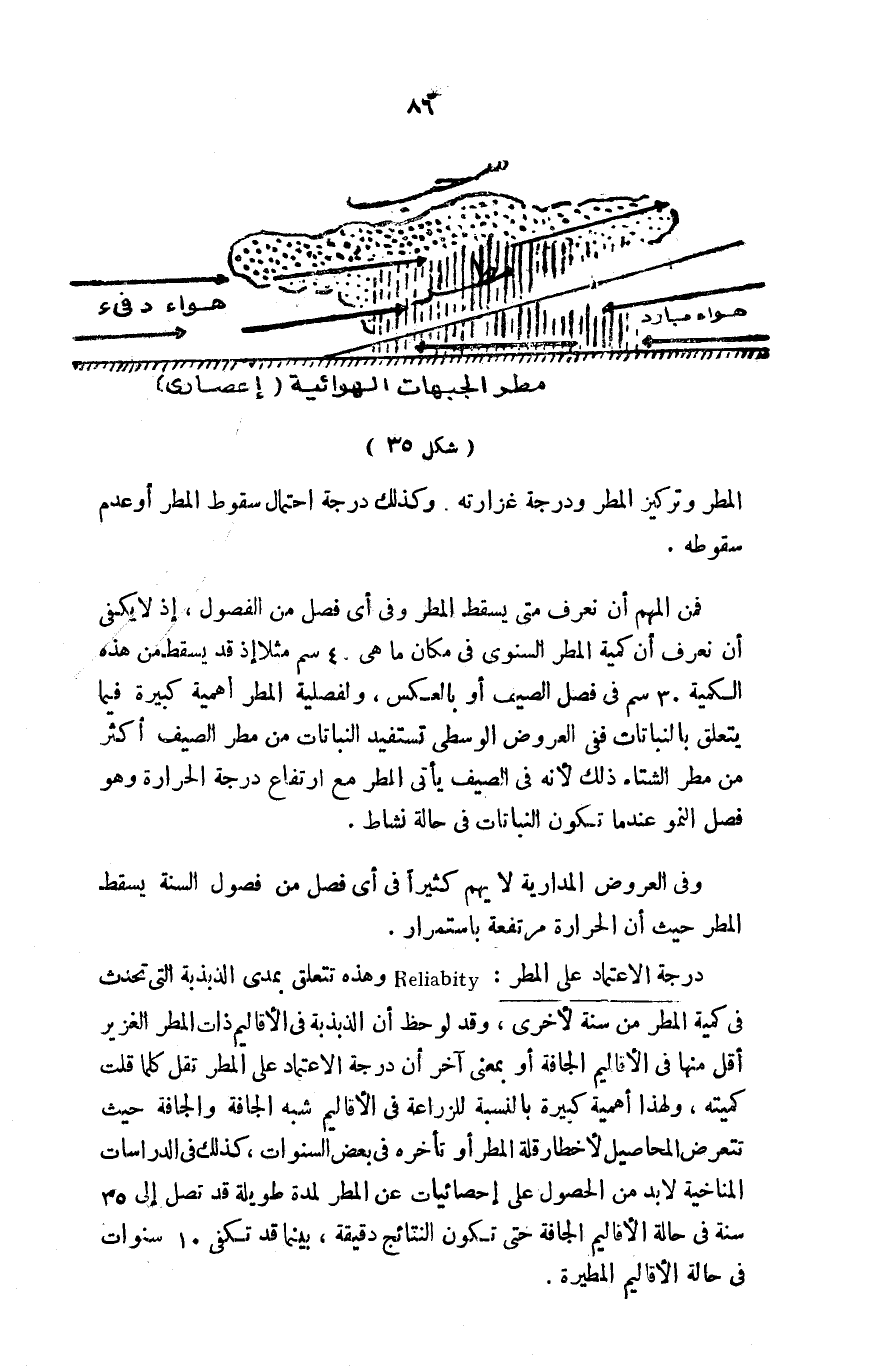 المطر وتركيز المطر ودرجة غزارته. وكذلك درجة احتمال سقوط المطر أو عدم سقوطه.
