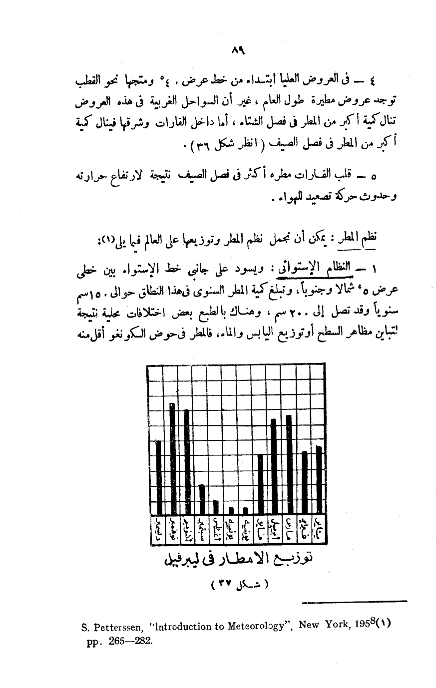 4- في العروض العليا ابتداء من خط عرض 40 درجة ومتجها نحو القطب توجد عروض مطيرة طول العام، غير أن السواحل الغربية في هذه العروض تنال كمية من المطر في فصل الشتاء، أما داخل القارات وشرقها فينال كمية أكبر من المطر في فصل الصيف "انظر شكل 36".
