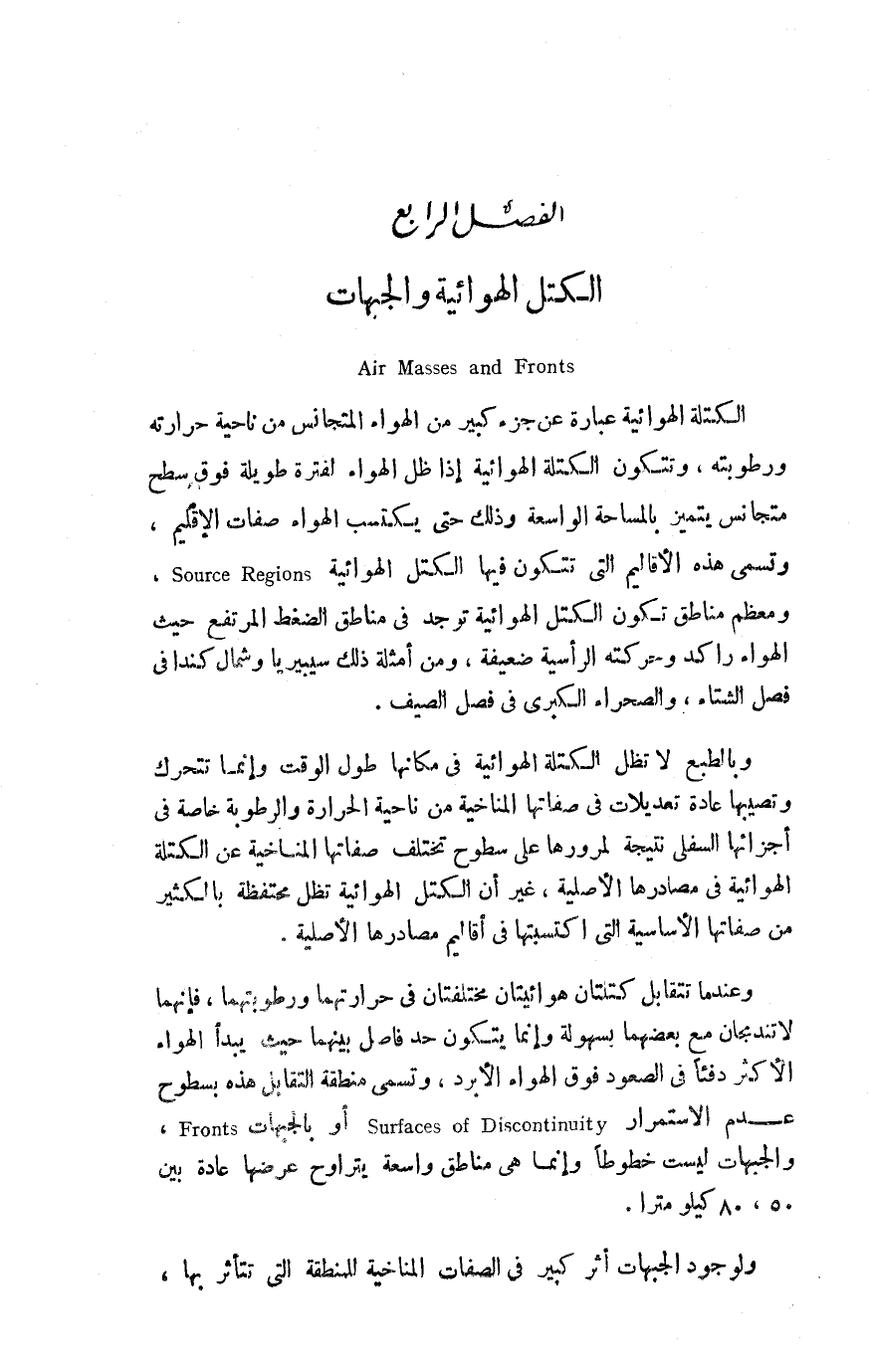الفصل الرابع: الكتل الهوائية والجبهات Air Masses and Fronts