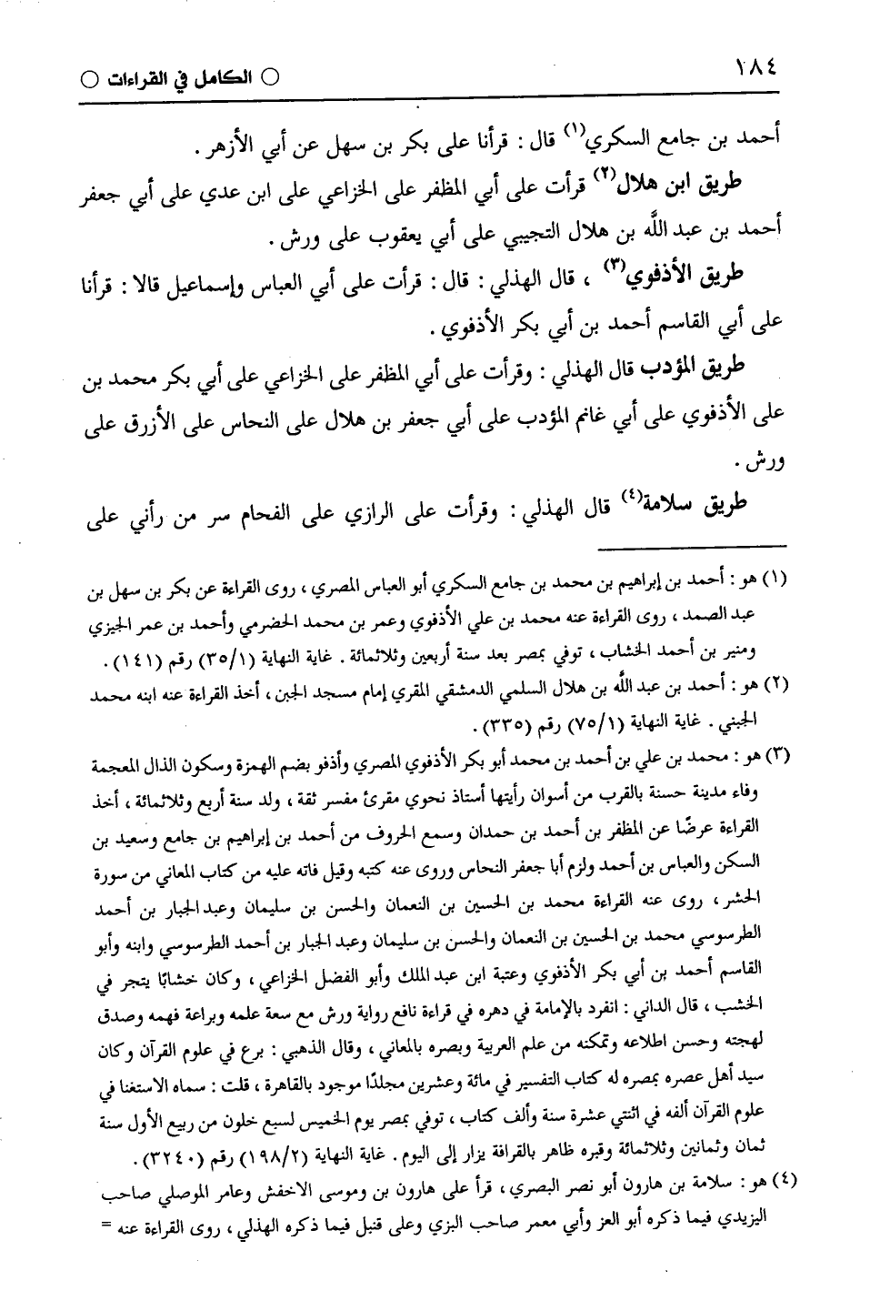 طريق سلامة قال الْهُذَلِيّ: وقرأت على الرَّازِيّ على الفحام سر من رأني على