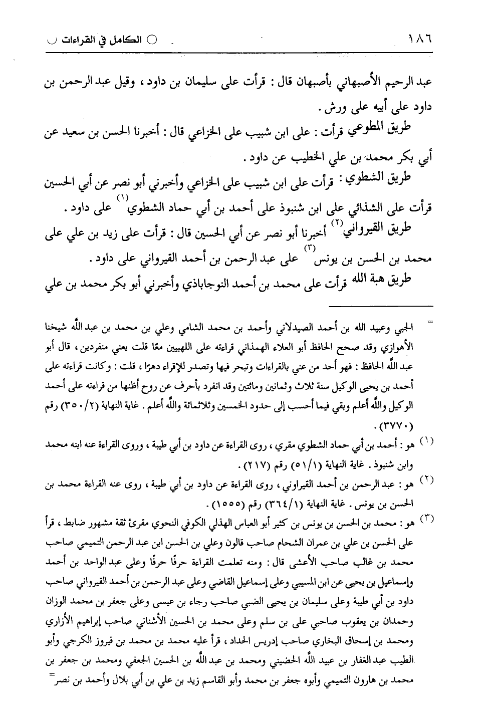 طريق الشطوي: قرأت على ابْن شَبِيبٍ على الْخُزَاعِيّ وأخبرني أبو نصر عن أبي الحسين قرأت على الشَّذَائِيّ على ابْن شَنَبُوذَ على أحمد بن أبي حماد الشطوي على داود.