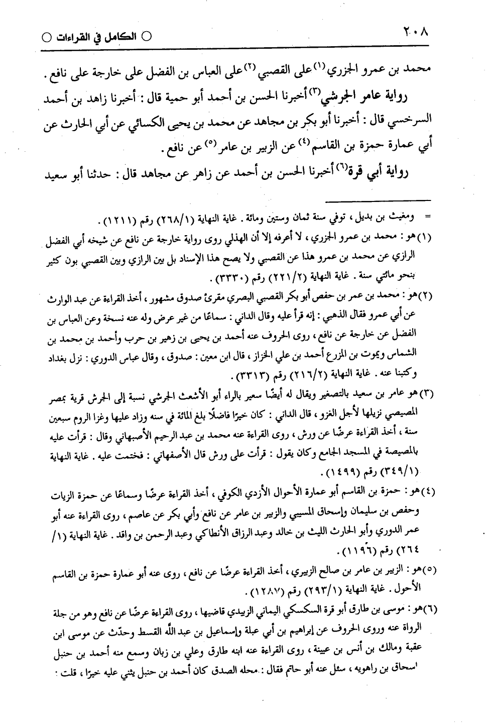 رواية عامر الجرشي أخبرنا الحسن بن أحمد أبو حمية قال: أخبرنا زاهد بن أحمد السرخسي قال: أخبرنا أبو بكر بن مجاهد عن محمد بن يحيى الكسائي عن أبي الحارث عن أبي عمارة حَمْزَة بن القاسم عن الزبير بن عامر عن نافع.
