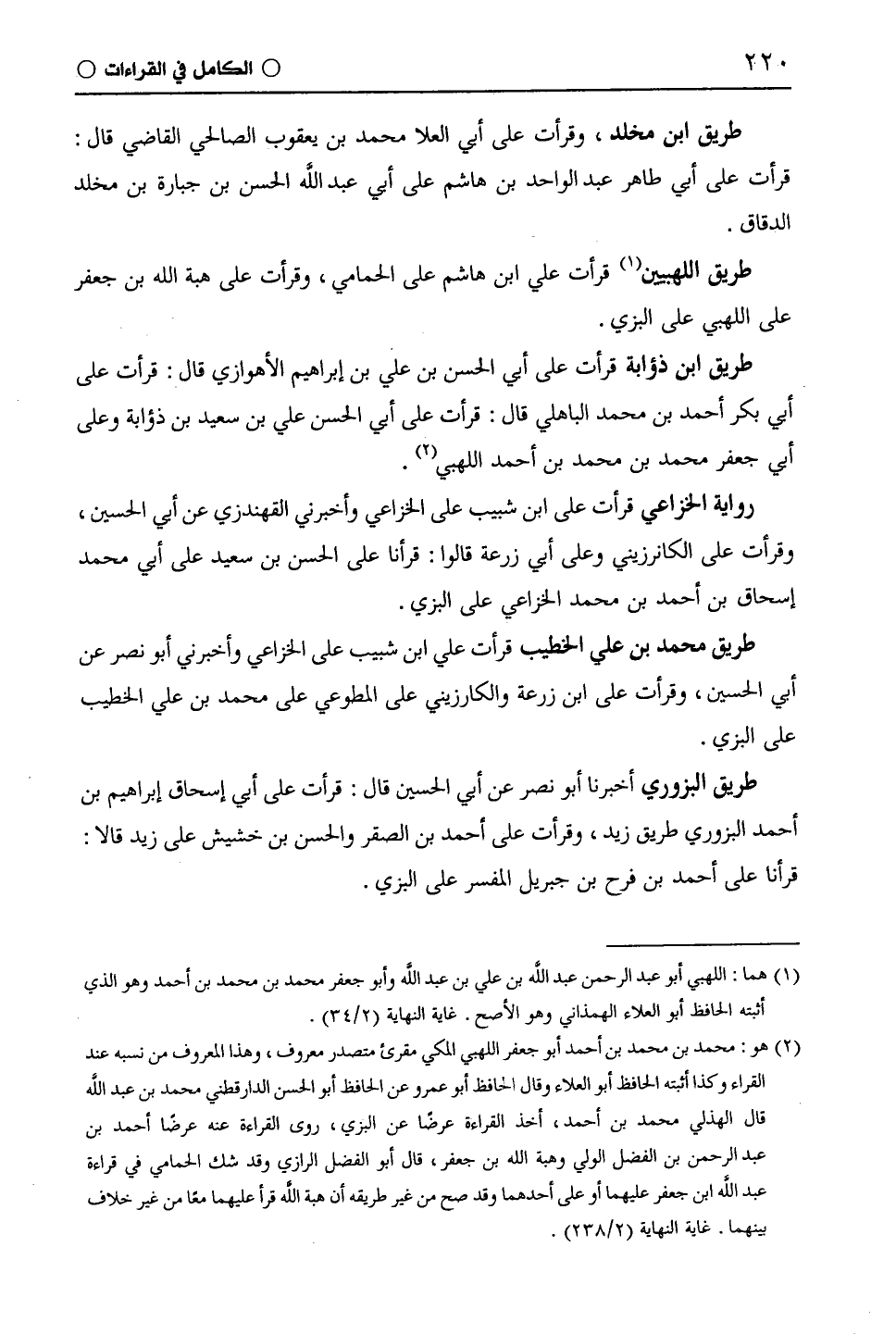 طريق ابن ذؤابة قرأت على أبي الحسن بن علي بن إبراهيم الأهوازي قال: قرأت على أبي بكر أحمد بن محمد الباهلي قال: قرأت على أبي الحسن علي بن سعيد بن ذؤابة وعلى أبي جعفر محمد بن محمد بن أحمد اللهبي.