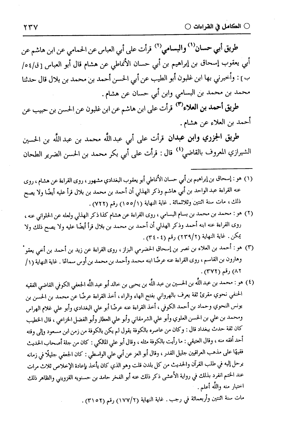 طريق الجزري وابن عبدان قرأت على أبي عبد اللَّه محمد بن عبد الله بن الحسين الشيرازي المعروف بالقاضي قال: قرأت على أبي بكر محمد بن الحسن الضَّرِير الطحان