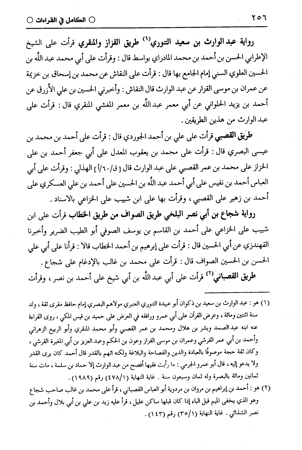 طريق القصباني قرأت على أبي عبد اللَّه بن أبي شيخ على أحمد بن نصر، وقرأت