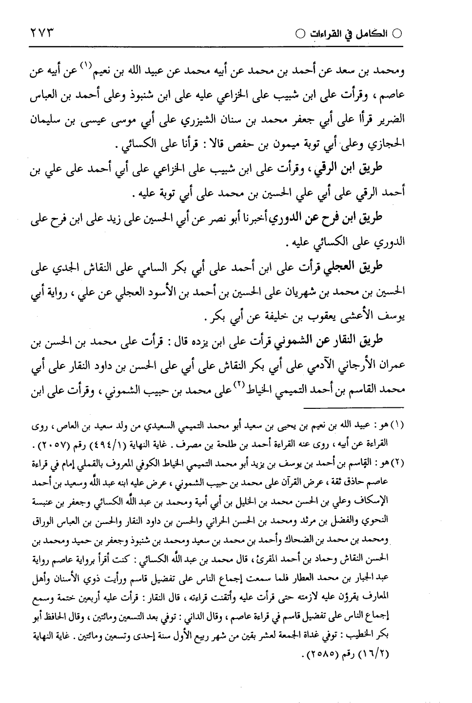 طريق ابن فرح عن الدُّورِيّ أخبرنا أبو نصر عن أبي الحسين على زيد على ابن فرح على الدُّورِيّ على الكسائي عليه.