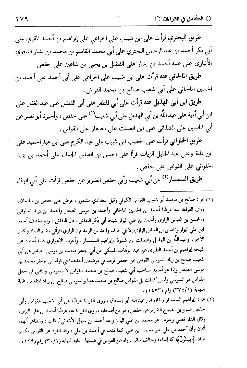 طريق المالحاني عنه قرأت على ابْن شَبِيبٍ على الْخُزَاعِيّ على أبي أحمد على أحمد بن الحسين المالحاني على أبي شعيب صالح بن محمد القراش.