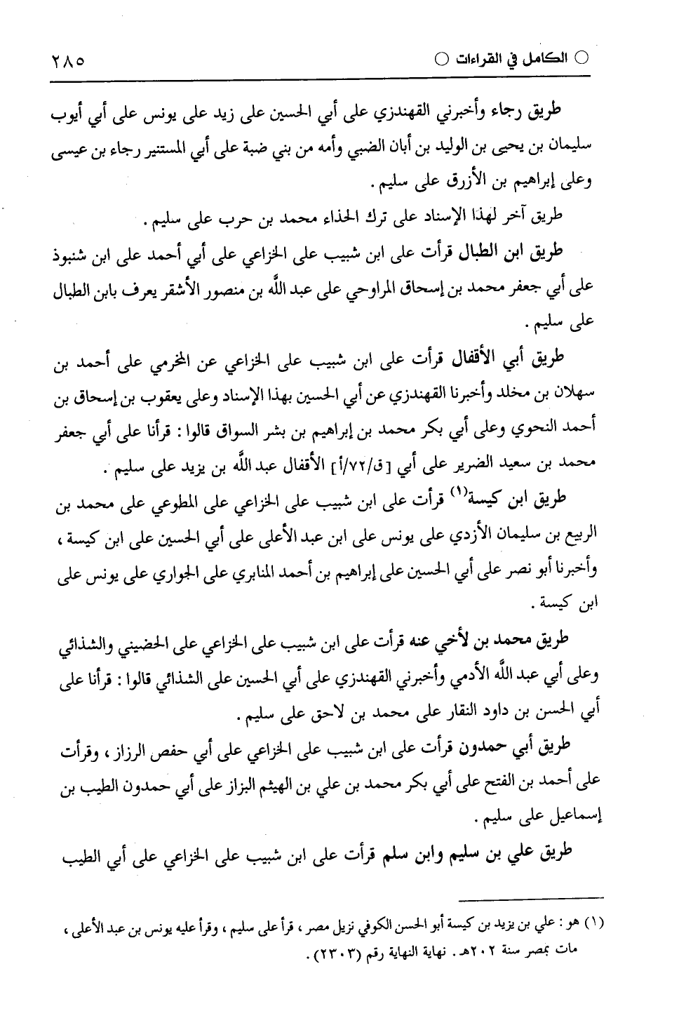 طريق رجاء وأخبرني الْقُهُنْدَزِيّ على أبي الحسين على زيد على يونس على أبي أيوب سليمان بن يحيى بن الوليد بن أبان الضبي وأمه من بني ضبة على أبي المستنير رجاء بن عيسى وعلى إبراهيم بن الأزرق على سليم.