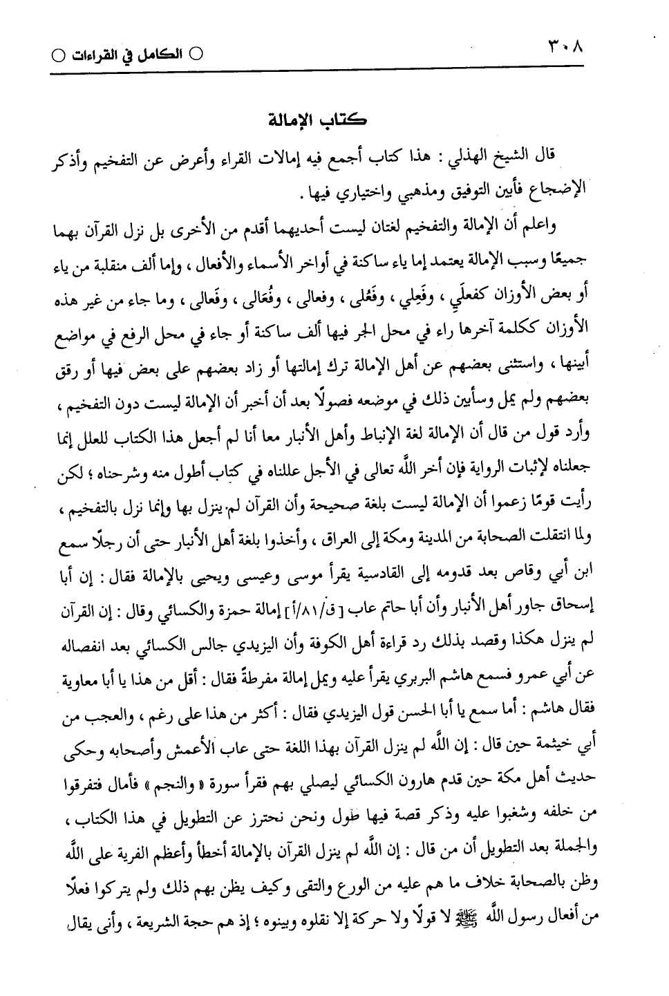 قال الشيخ الْهُذَلِيّ: هذا كتاب أجمع فيه إمالات القراء وأعرض عن التفخيم وأذكر الإضجاع فأبين التوفيق ومذهبي واختياري فيها.
