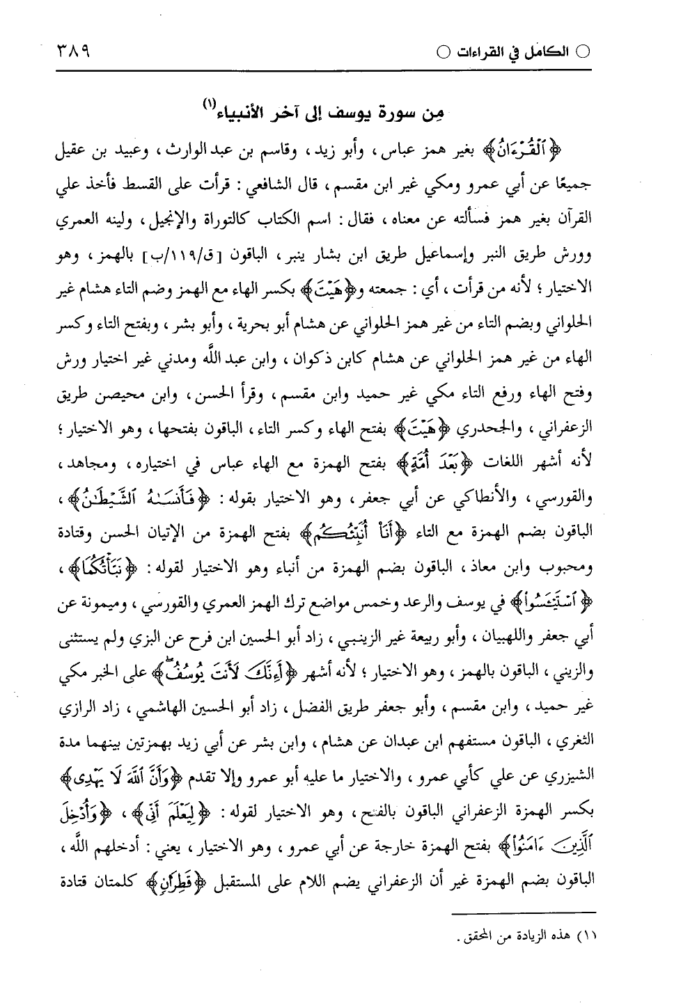 كتاب الكامل في القراءات العشر والأربعين الزائدة عليها