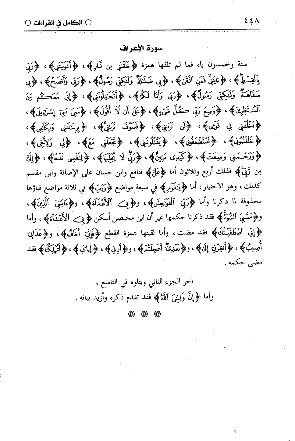 آخر الجزء الثاني ويتلوه في التاسع،