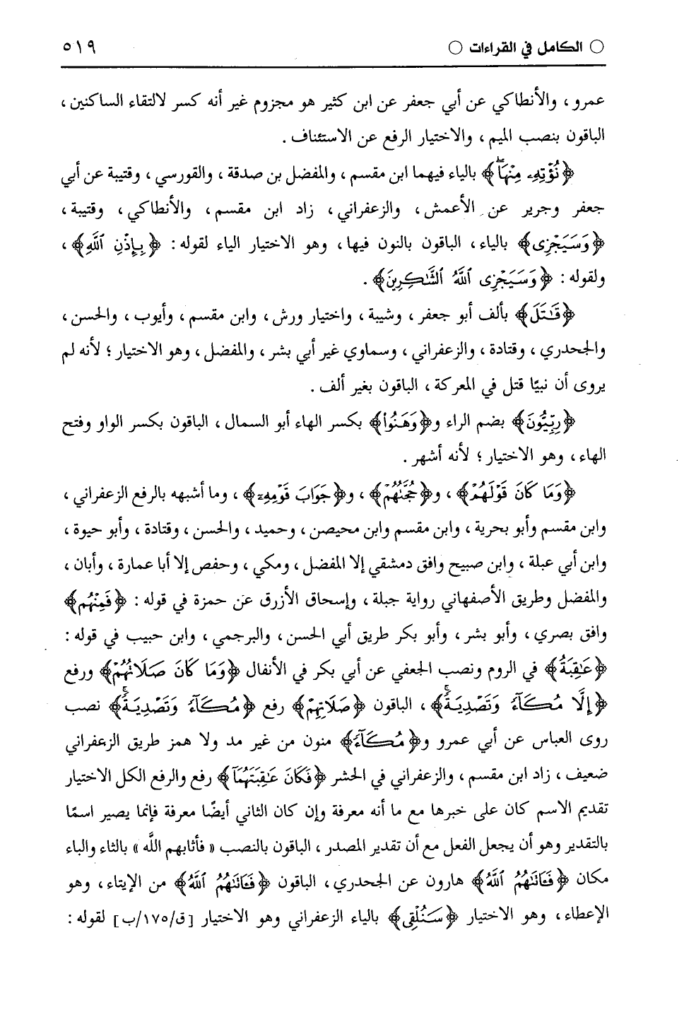 كتاب الكامل في القراءات العشر والأربعين الزائدة عليها