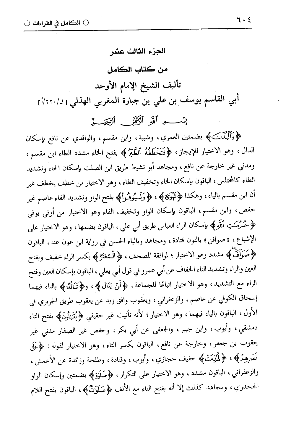كتاب الكامل في القراءات العشر والأربعين الزائدة عليها