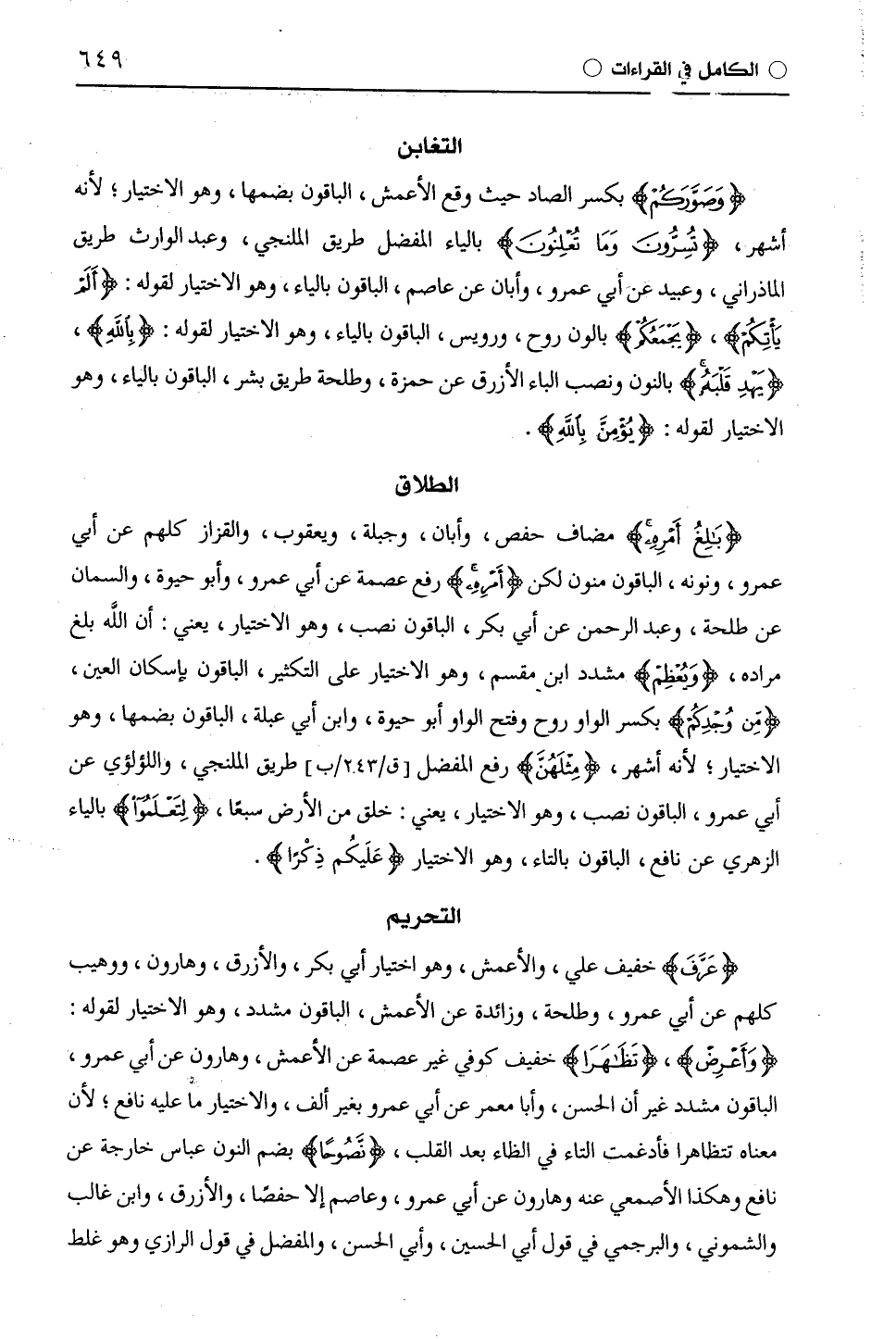 كتاب الكامل في القراءات العشر والأربعين الزائدة عليها