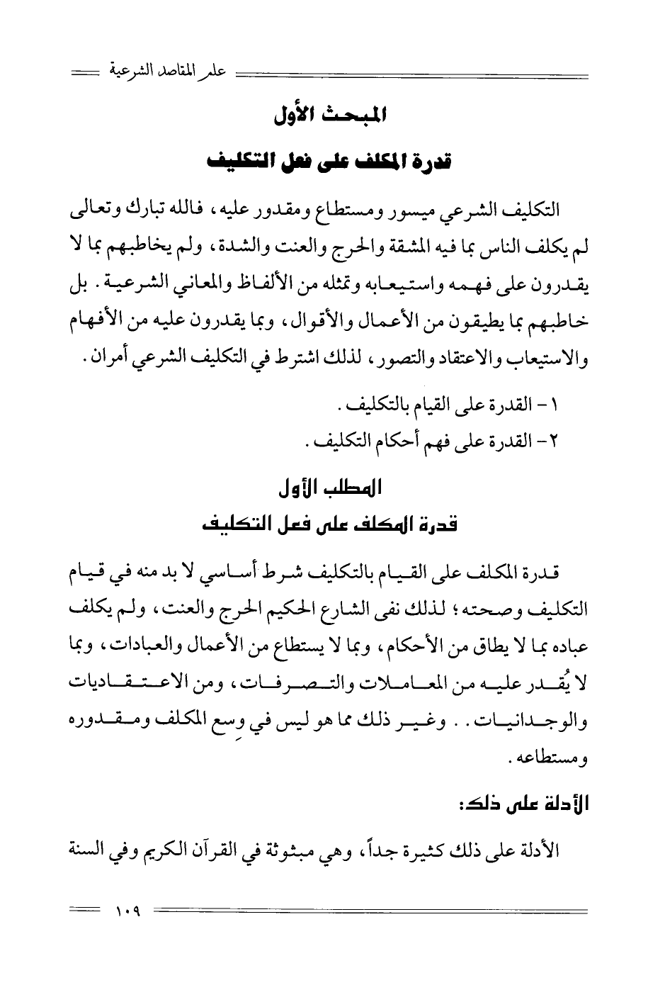 1- القدرة على القيام بالتكليف.