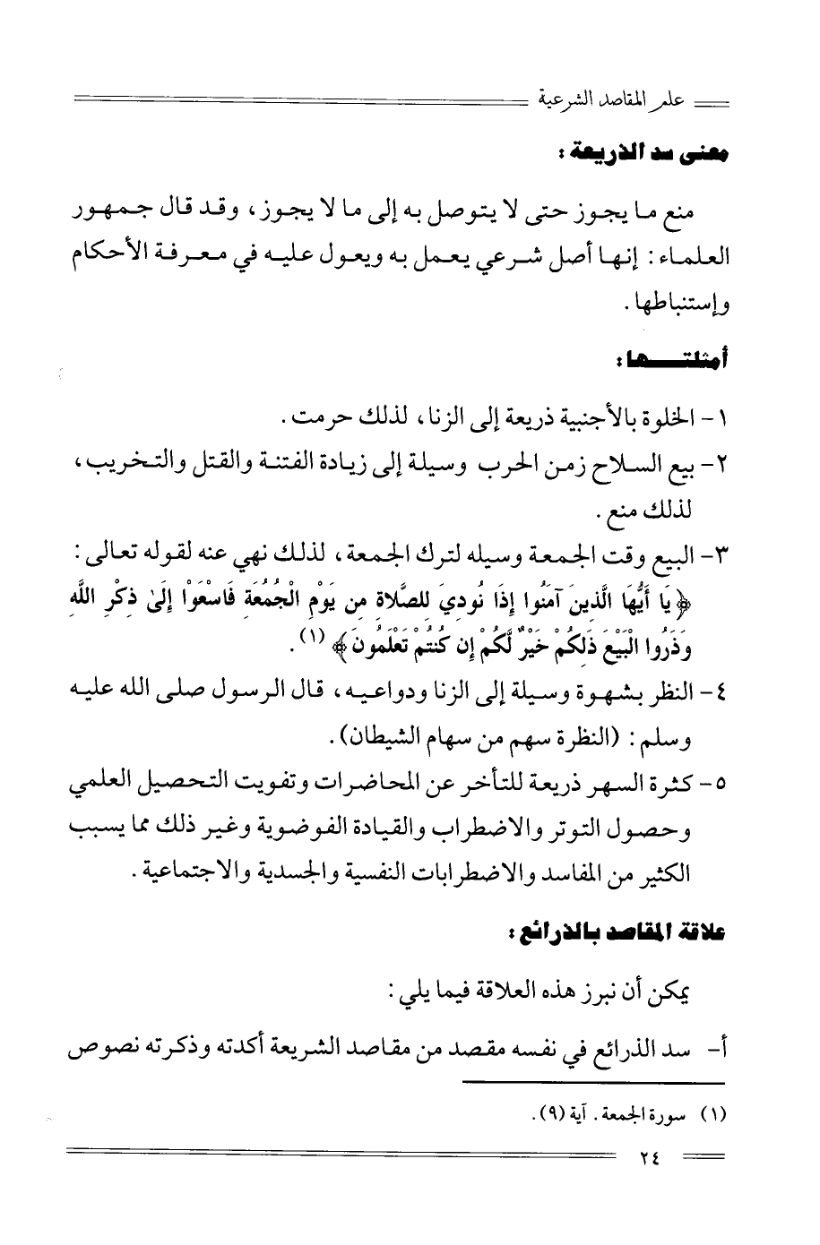منع ما يجوز حتى لا يتوصل به إلى ما لا يجوز، وقد قال جمهور العلماء: إنها أصل شرعي يعمل به ويعول عليه في معرفة الأحكام واستنباطها.