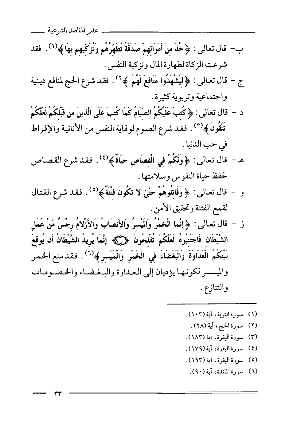 هـ- قال تعالى: {وَلَكُمْ فِي الْقِصَاصِ حَيَاةٌ} 4. فقد شرع القصاص لحفظ حياة النفوس وسلامتها.