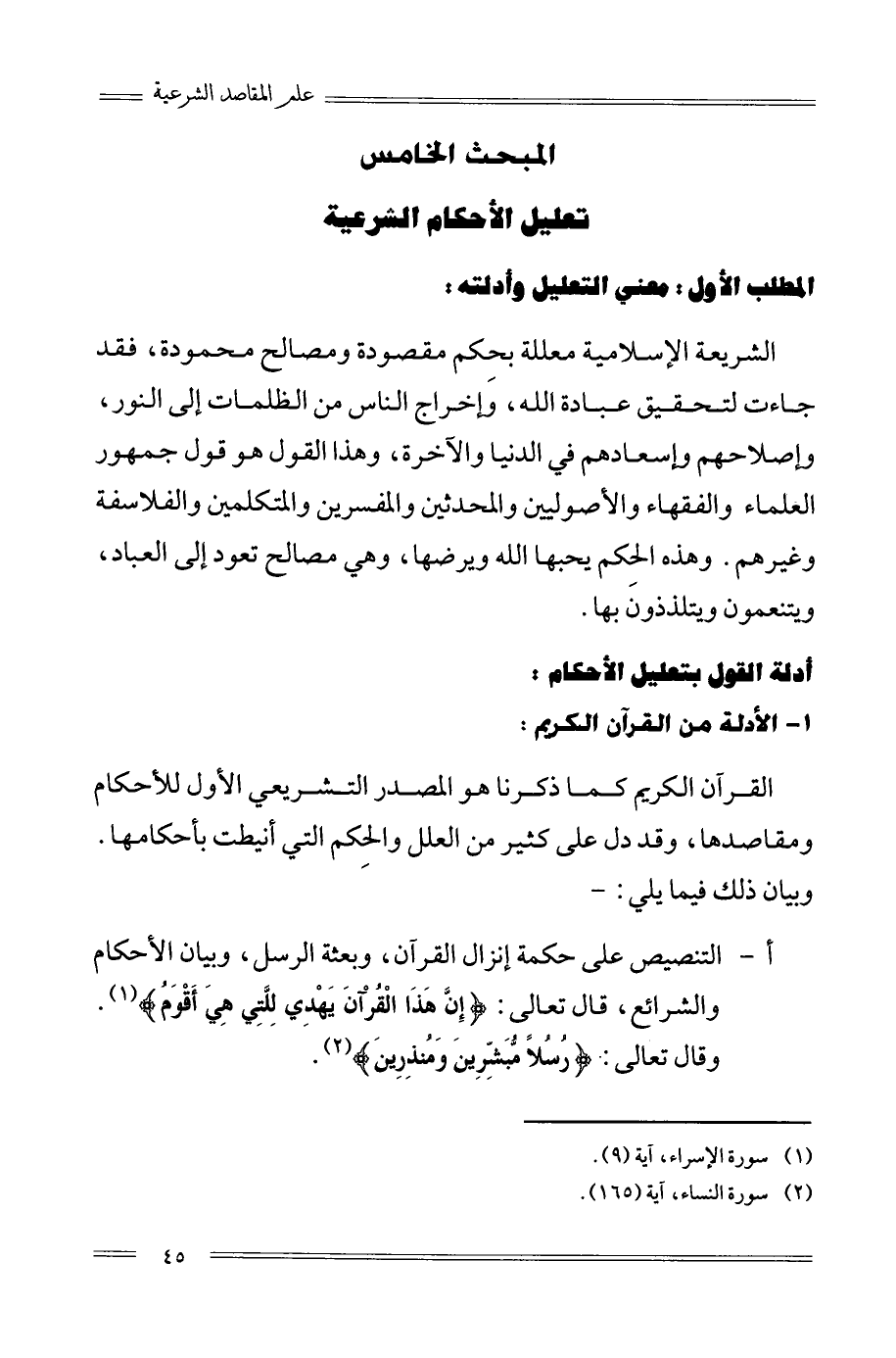 المبحث الخامس: تعليل الأحكام الشرعية