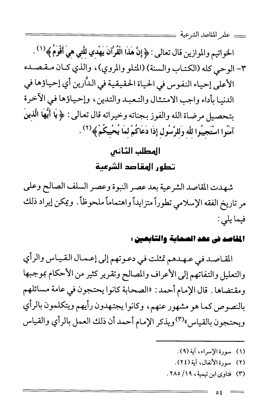 3- الوحي كله "الكتاب والسنة" "المتلو والمروي"، والذي كان مقصده الأعلى إحياء النفوس في الحياة الحقيقية في الدَّارين أي إحياؤها في الدنيا بأداء واجب الامتثال والتعبد والتدين، وإحياؤها في الآخرة بتحصيل مرضاة الله والفوز بجناته وخيراته قال تعالى: {يَا أَيُّهَا الَّذِينَ آمَنُوا اسْتَجِيبُوا لِلَّهِ وَلِلرَّسُولِ إِذَا دَعَاكُمْ لِمَا يُحْيِيكُمْ} 2.