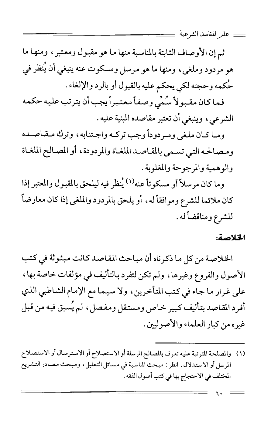 1 والمصلحة المترتبة عليه تعرف بالمصالح المرسلة أو الاستصلاح أو الاسترسال أو الاستصلاح المرسل أو الاستدلال، انظر: مبحث المناسبة في مسائل التعليل، ومبحث ومصاد التشريع المختلف في الاحتجاج بها في كتب أصول الفقه.