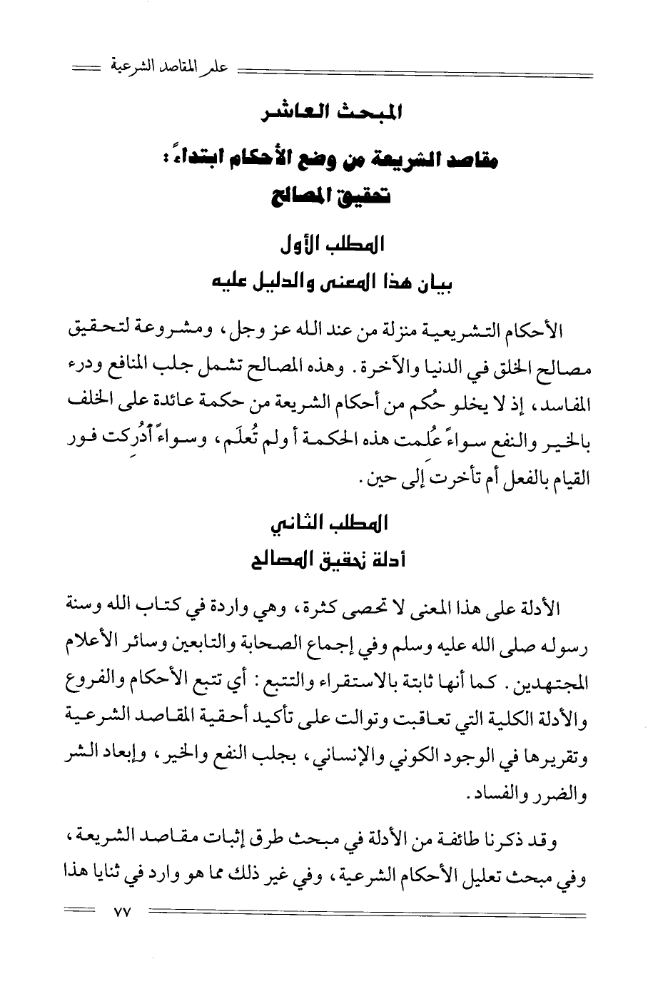 المبحث العاشر: مقاصد الشريعة من وضع الأحكام ابتداء تحقيق المصالح