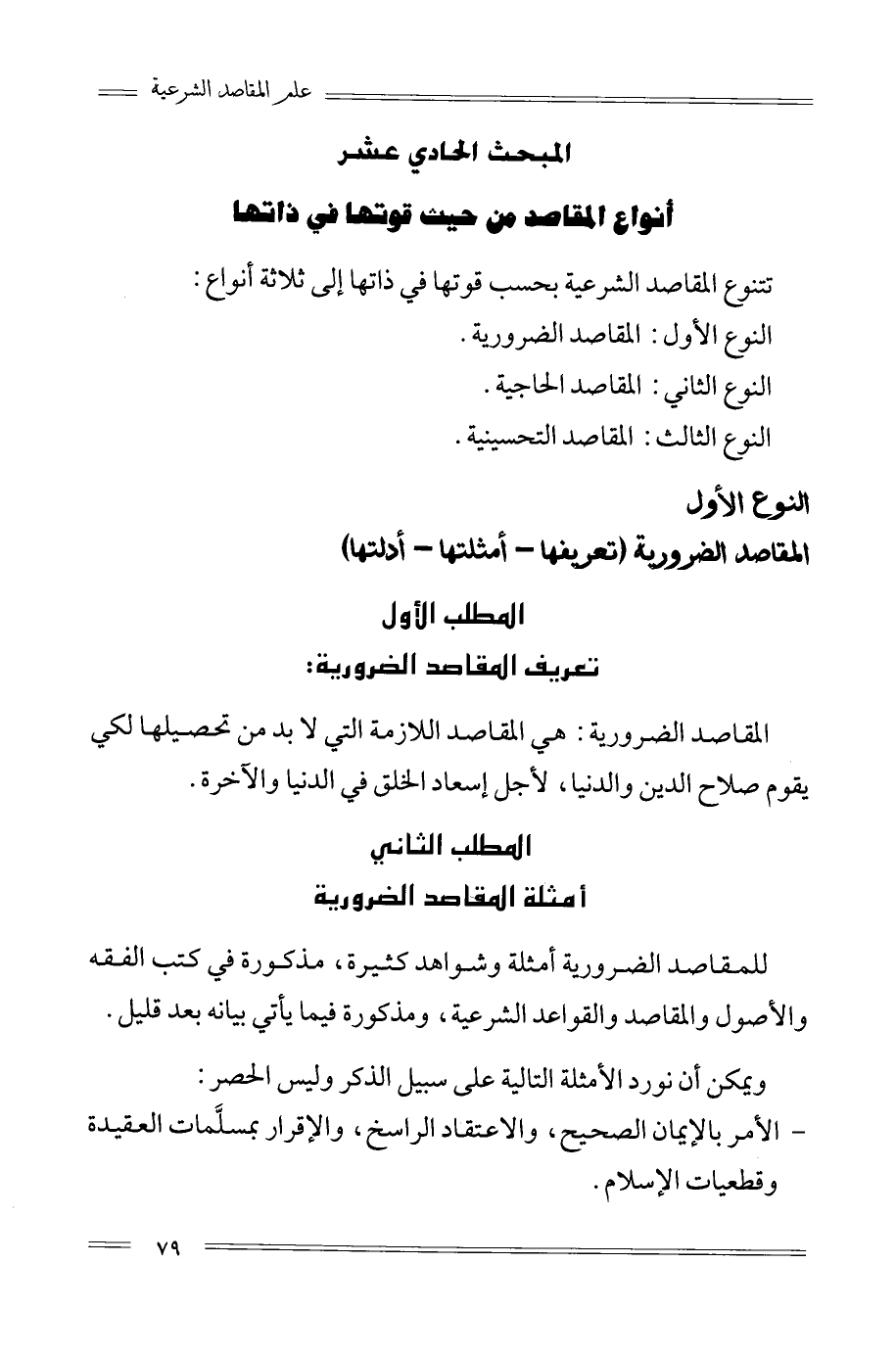 النوع الأول: المقاصد الضرورية "تعريفها - أمثلتها- أدلتها"