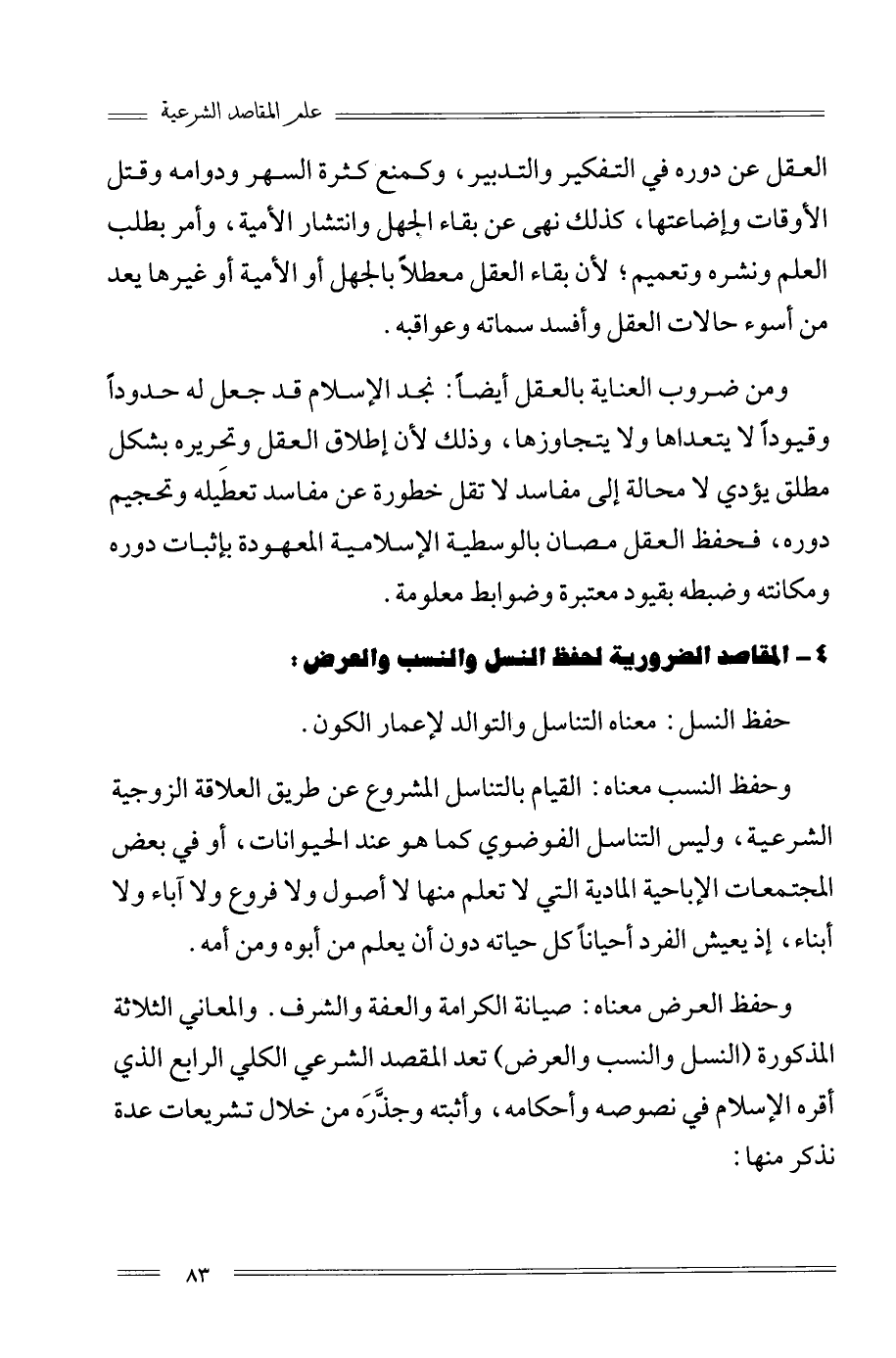 4- المقاصد الضرورية لحفظ النسل والنسب والعرض: