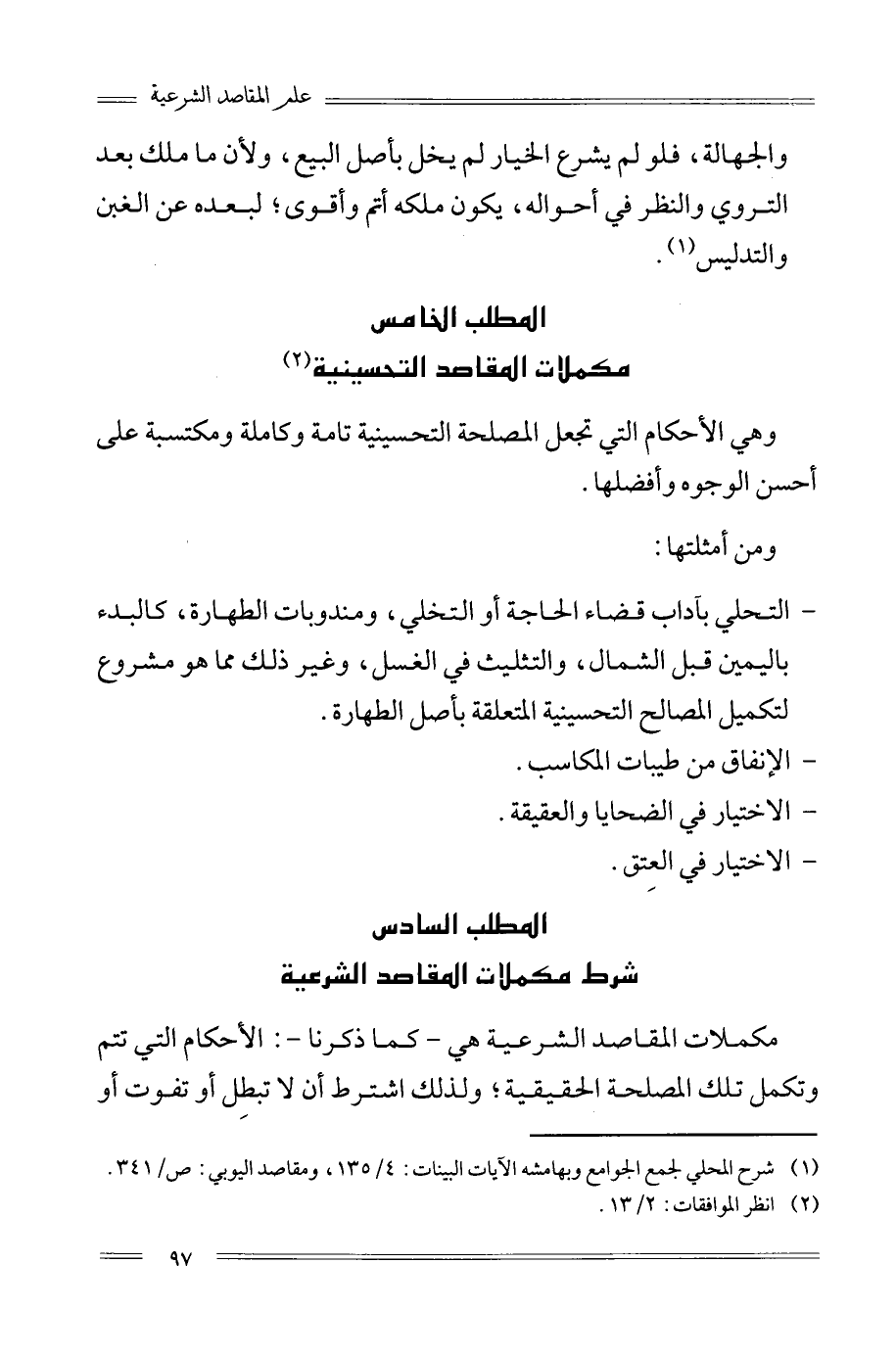 المطلب الخامس: مكملات المفاصد التحسينية 1