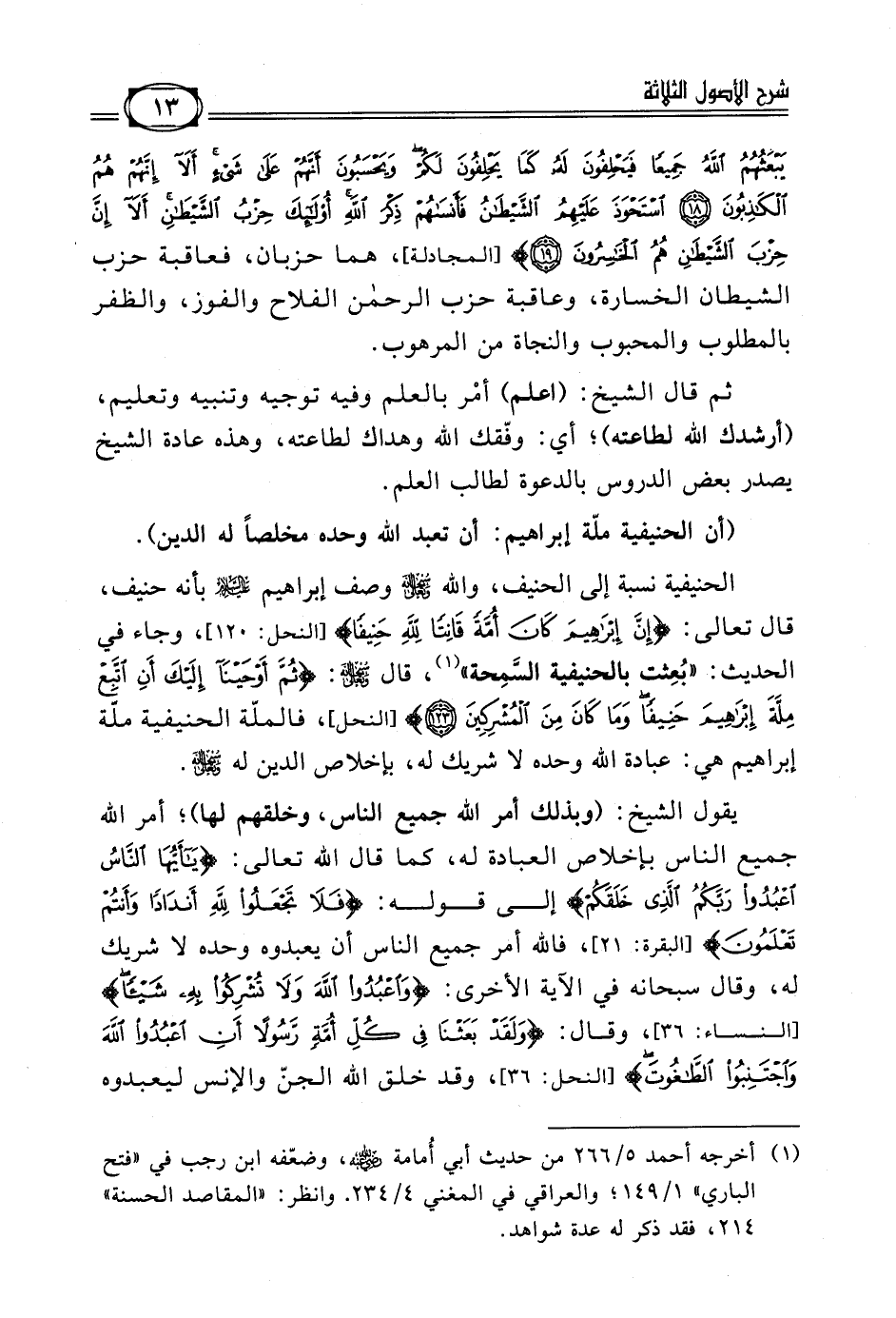 (أن الحنيفية ملة إبراهيم: أن تعبد الله وحده مخلصاً له الدين).