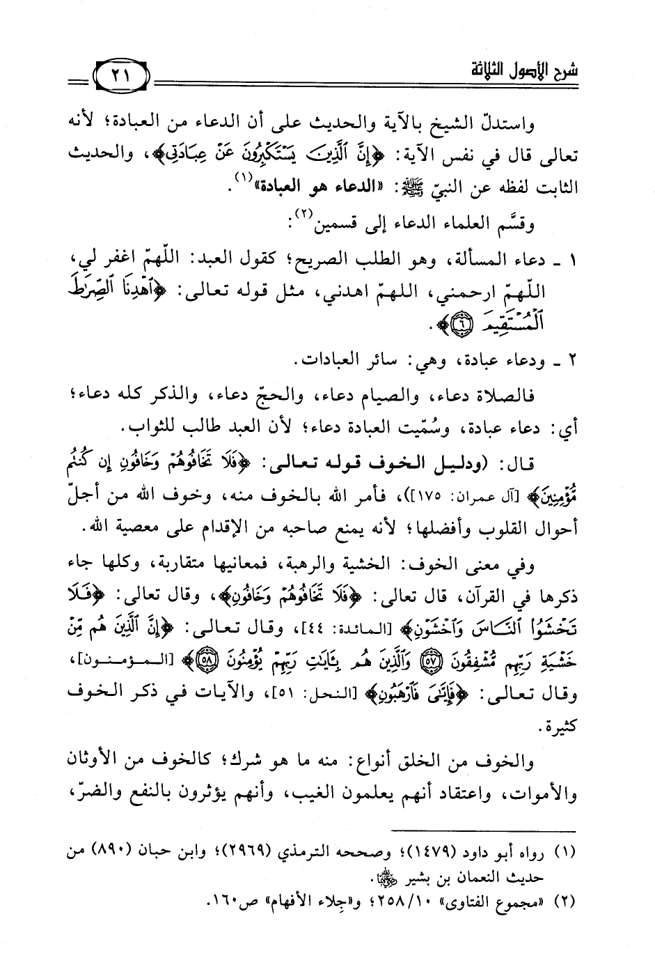 واستدل الشيخ بالآية والحديث على أن الدعاء من العبادة؛ لأنه تعالى قال في نفس الآية: {إِنَّ الَّذِينَ يَسْتَكْبِرُونَ عَنْ عِبَادَتِى}، والحديث الثابت لفظه عن النبي - صلى الله عليه وسلم -: "الدعاء هو العبادة " (¬1).