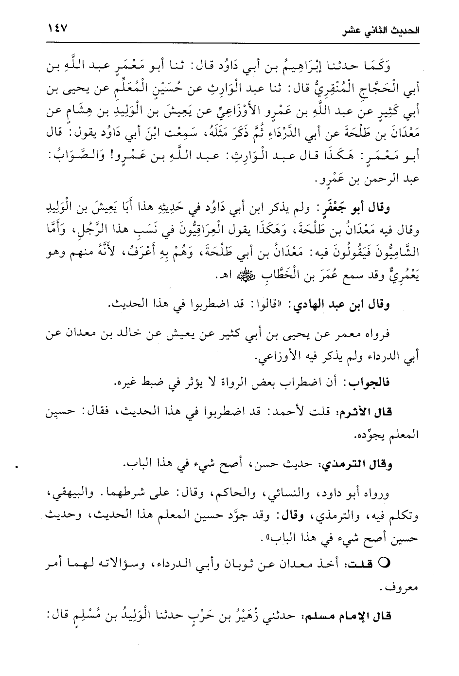 قال الإمام مسلم: حدثني زُهَيْرُ بن حَرْبٍ حدثنا الْوَلِيدُ بن مُسْلِمٍ قال: