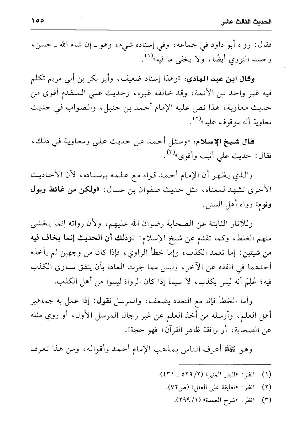 قال شيخ الإسلام: "وسئل أحمد عن حديث علي ومعاوية في ذلك، فقال: حديث علي أثبت وأقوى" (¬3).