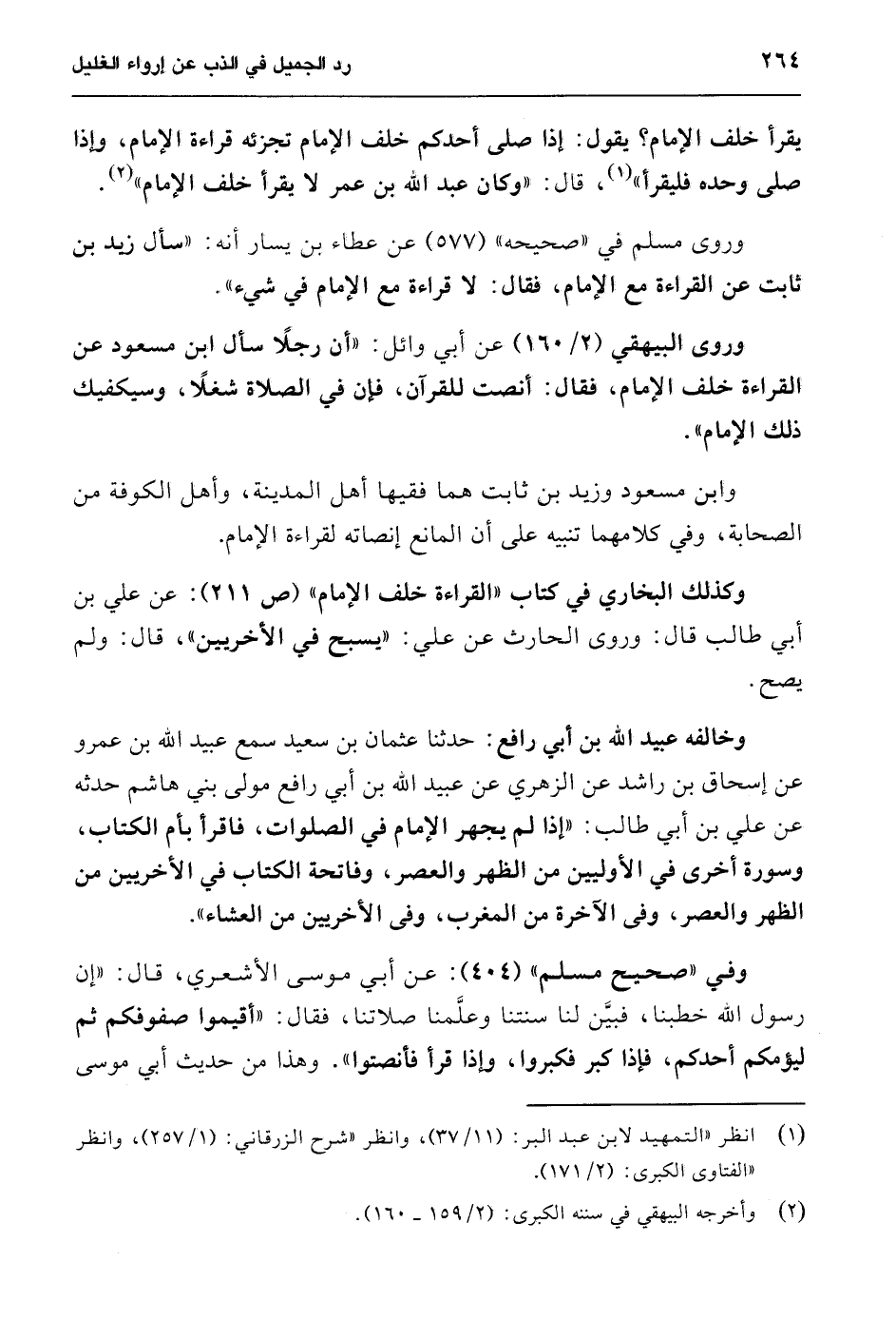 وكذلك البخاري في كتاب "القراءة خلف الإمام" (ص211): عن علي بن أبي طالب قال: وروى الحارث عن علي: "يسبح في الأخريين"، قال: ولم يصح.