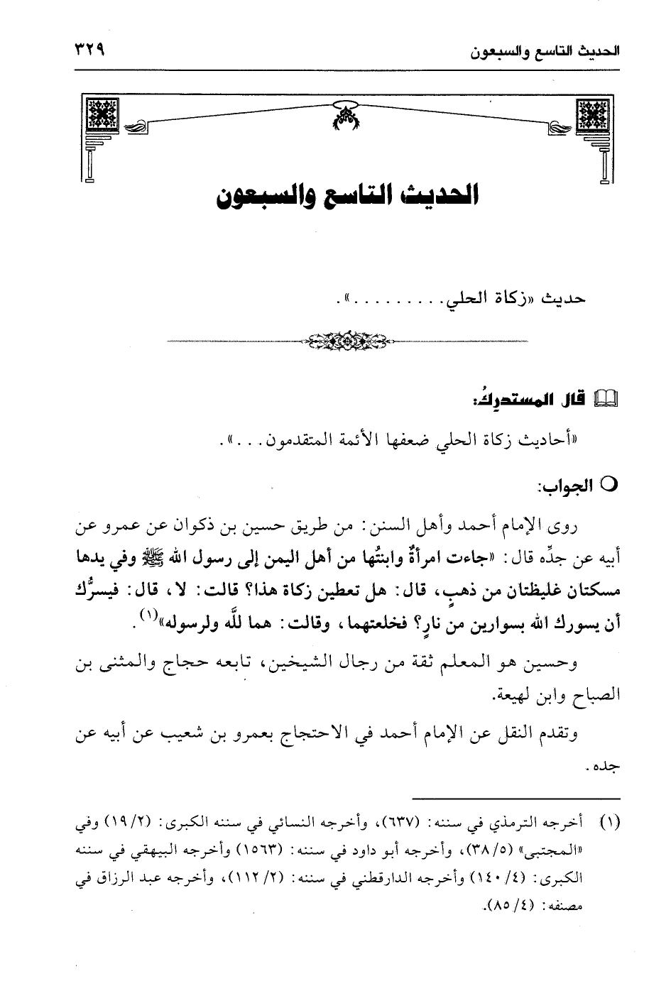 حديث "زكاة الحلي ......... ".
