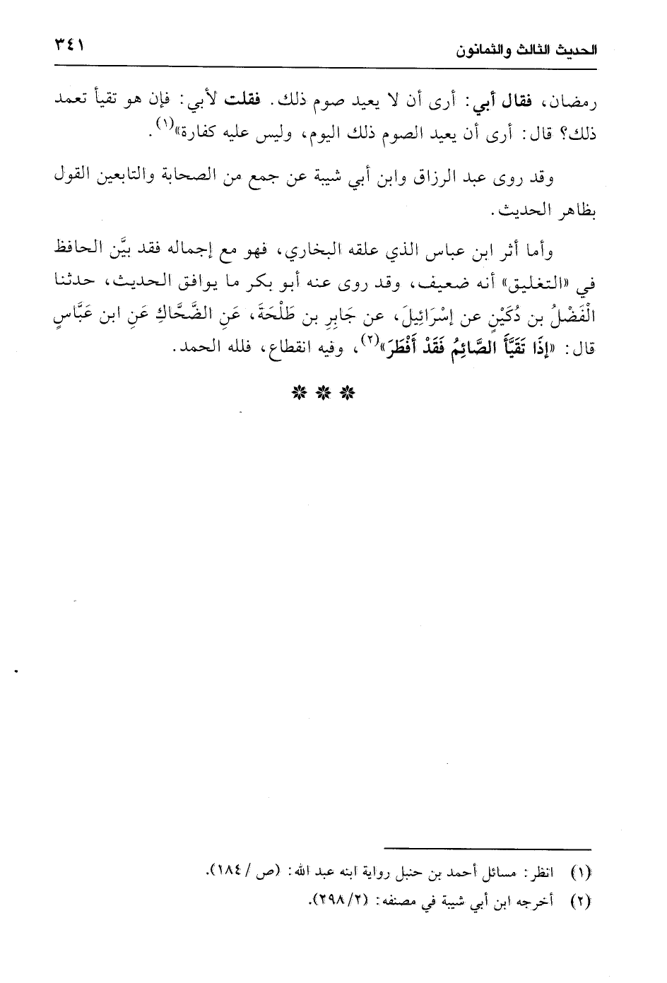 (¬1) انظر: مسائل أحمد، بن حنبل رواية ابنه عبد الله: (ص / 184).