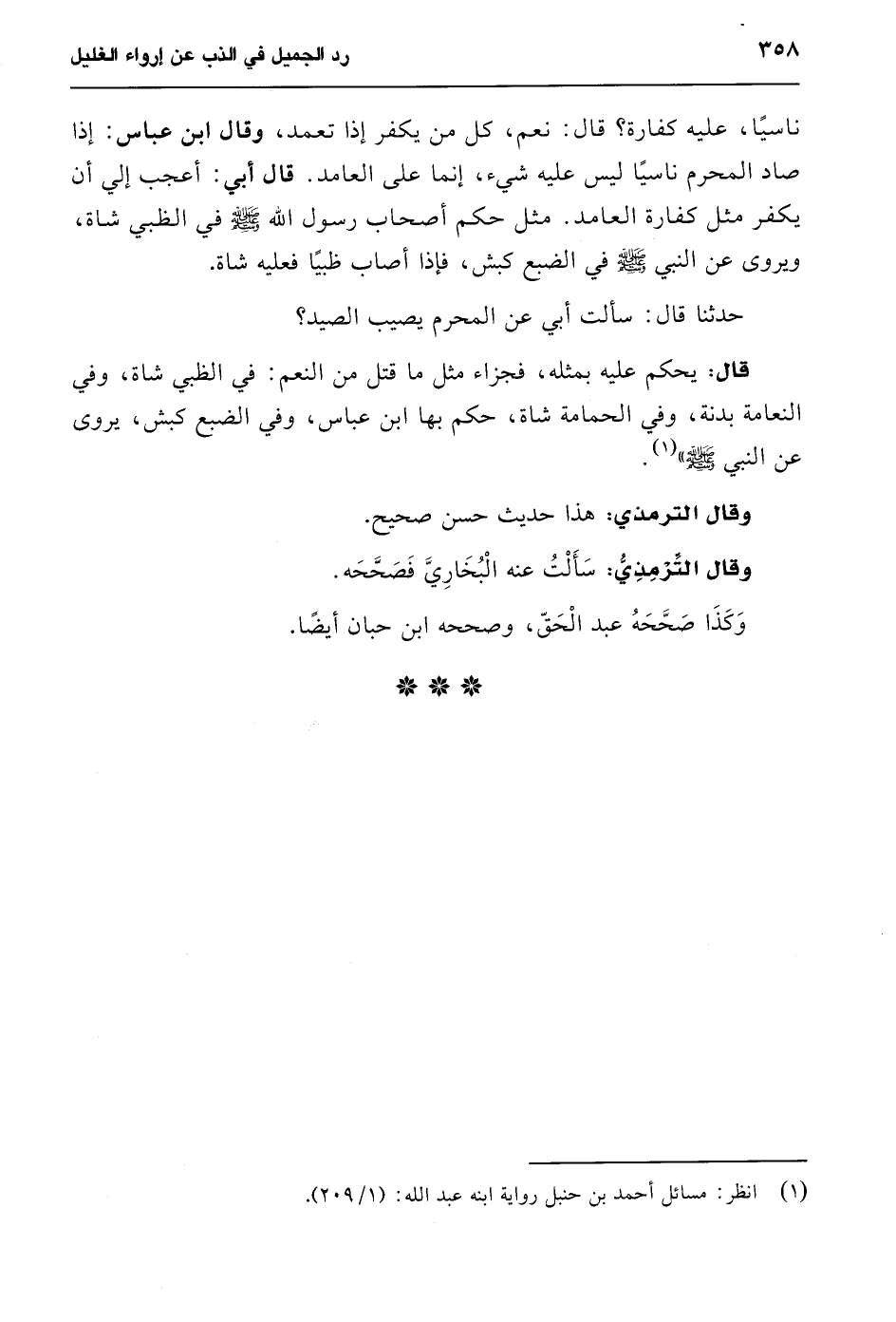 (¬1) انظر: مسائل أحمد بن حنبل رواية ابنه عبد الله: (1/ 209).