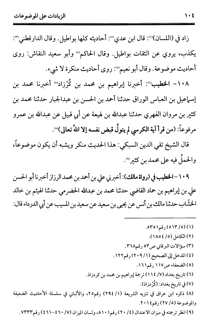 (¬4) ميزان الاعتدال (4/ 322)، ولسان الميزان (8/ 356) ترجمة الهيثم بن خالد الخشاب.