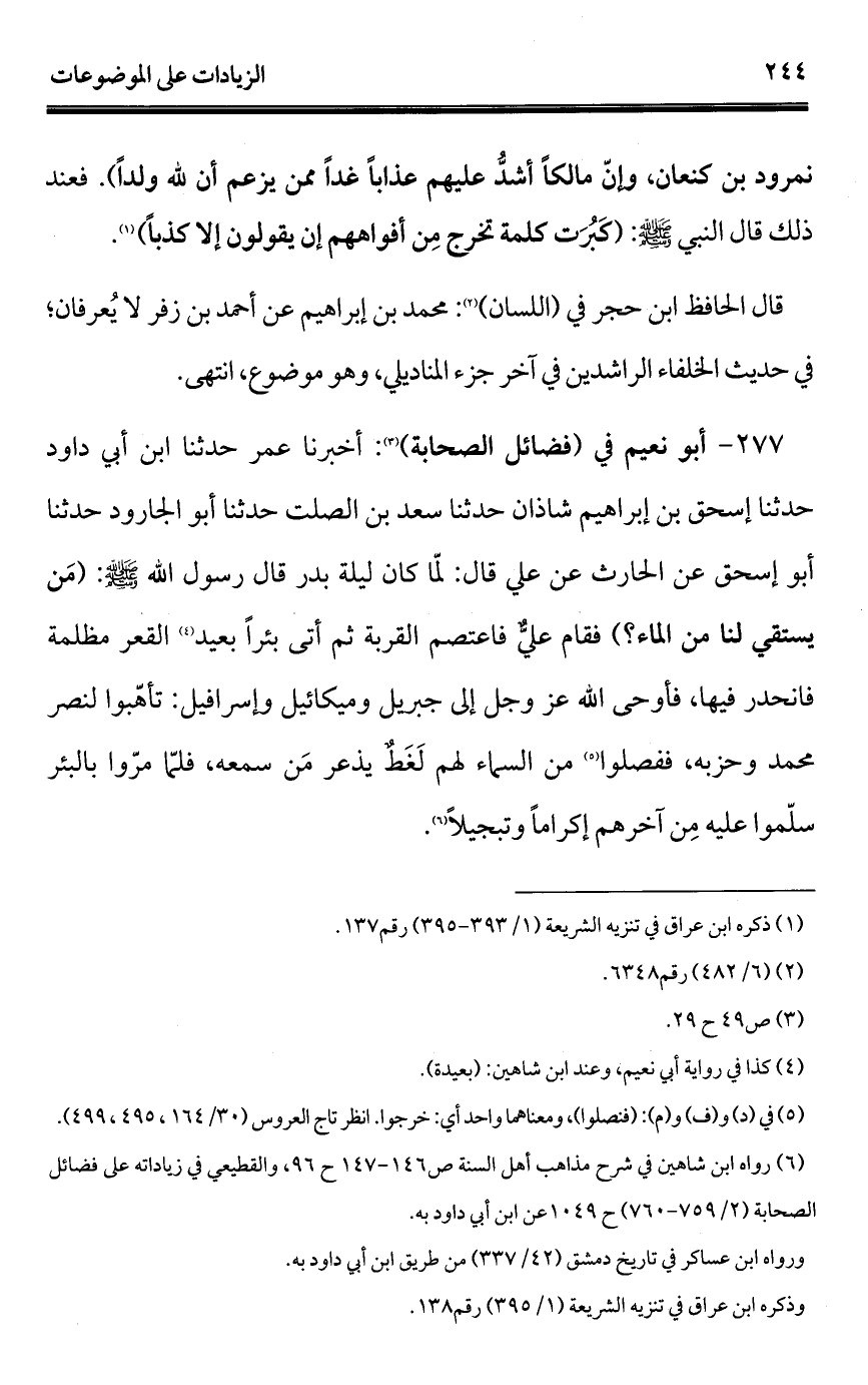 (¬4) رواه ابن شاهين في شرح مذاهب أهل السنة ص 146 - 147 ح 96، والقطيعي في زياداته على فضائل الصحابة (2/ 759 - 760) ح 1049 عن ابن أبي داود به.