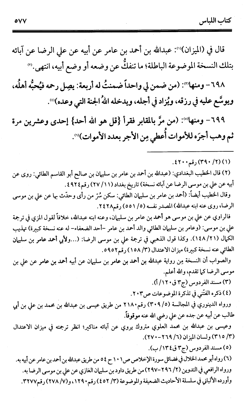 (¬2) رواه أبو محمد الخلال في فضائل سورة الإخلاص ص 101 ح 54 من طريق عبد الله بن أحمد بن عامر عن أبيه به.