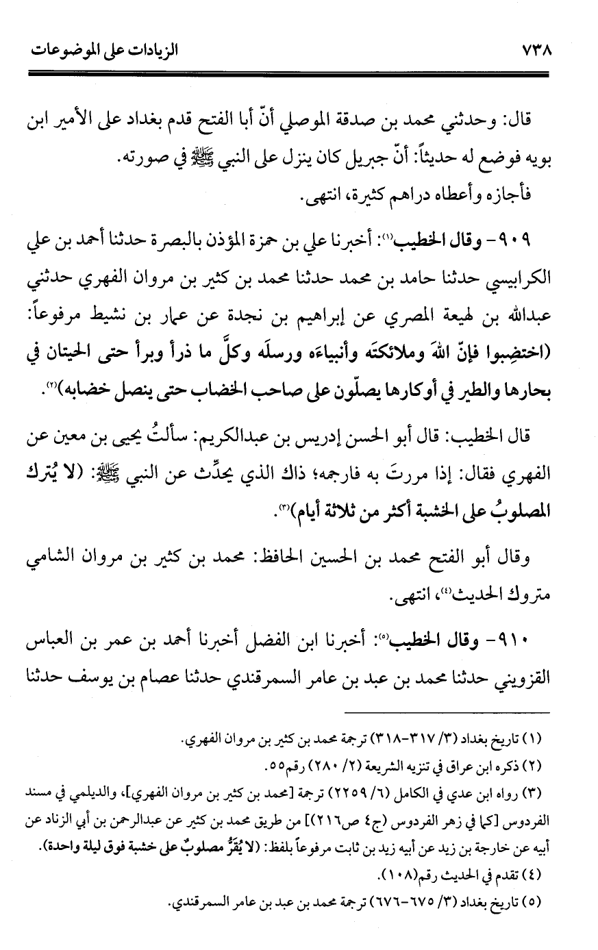 (¬1) تاريخ بغداد (3/ 317 - 318) ترجمة محمد بن كثير بن مروان الفهري.