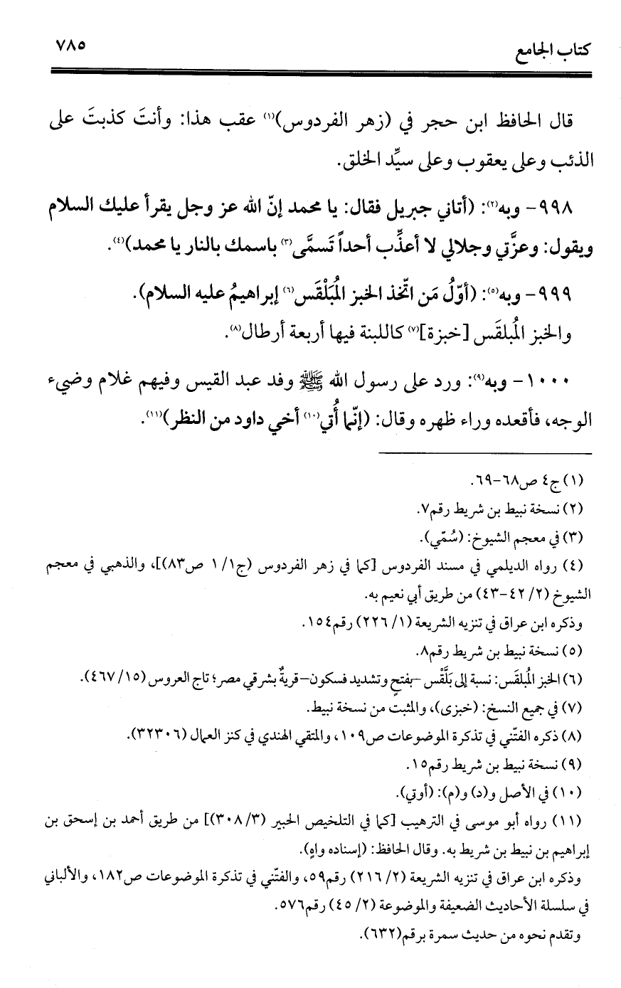 999 - وبه (¬1): (أوّلُ مَن اتّخذ الخبز المُبَلْقَس (¬2) إبراهيمُ عليه السلام).